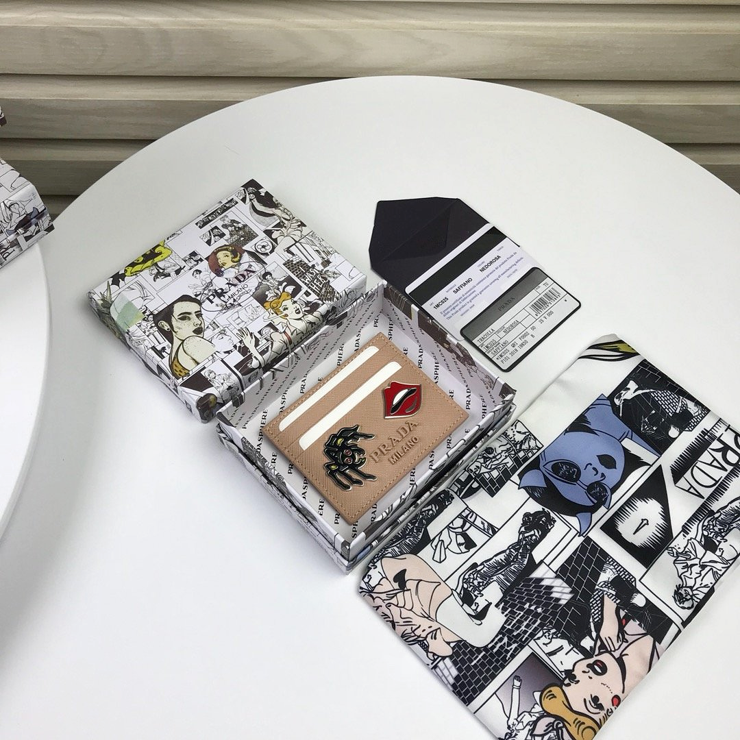 사피아노 가죽으로 제작된 프라다 베이지 카드 지갑
