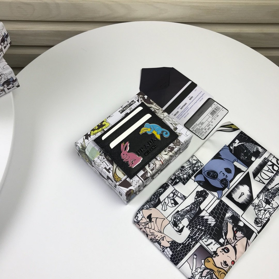프라다 블랙 사피아노 가죽 메탈 핀 카드 홀더 1MC025