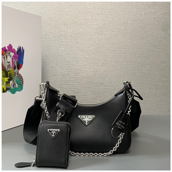 프라다 블랙 1BH203 체인 호보 핸드백